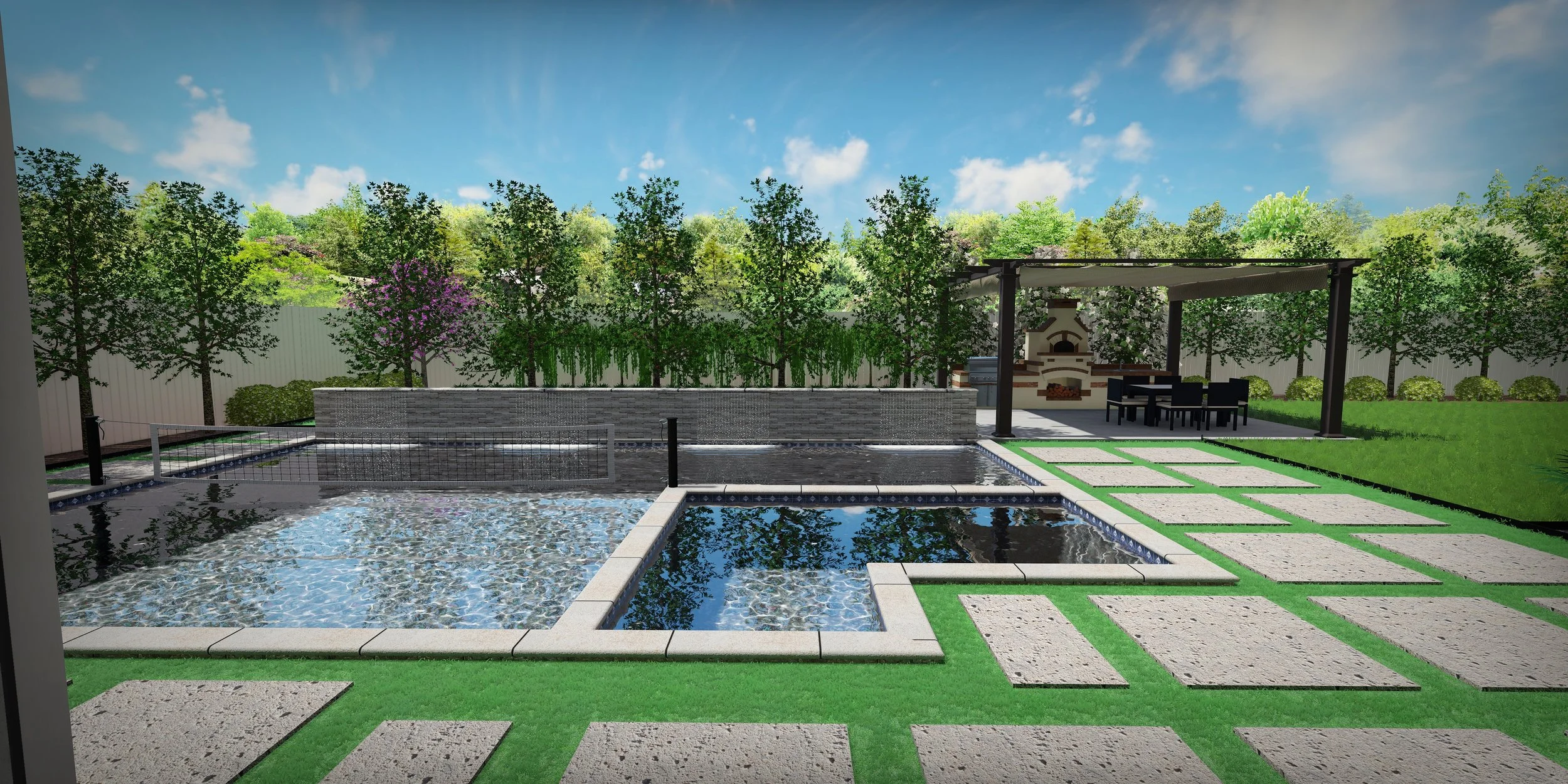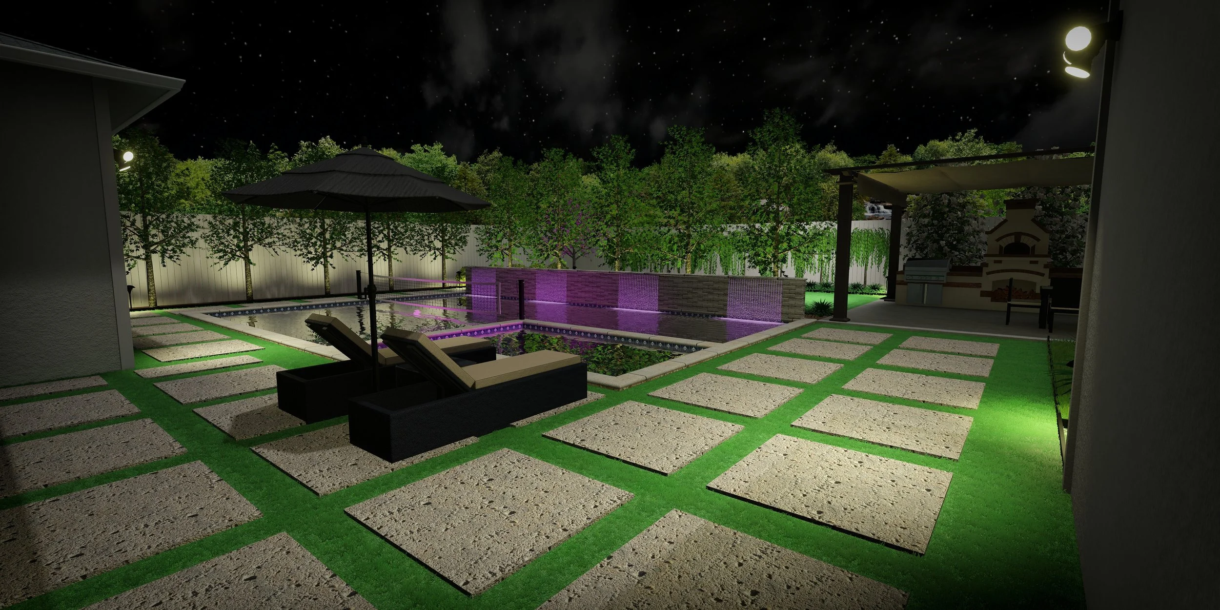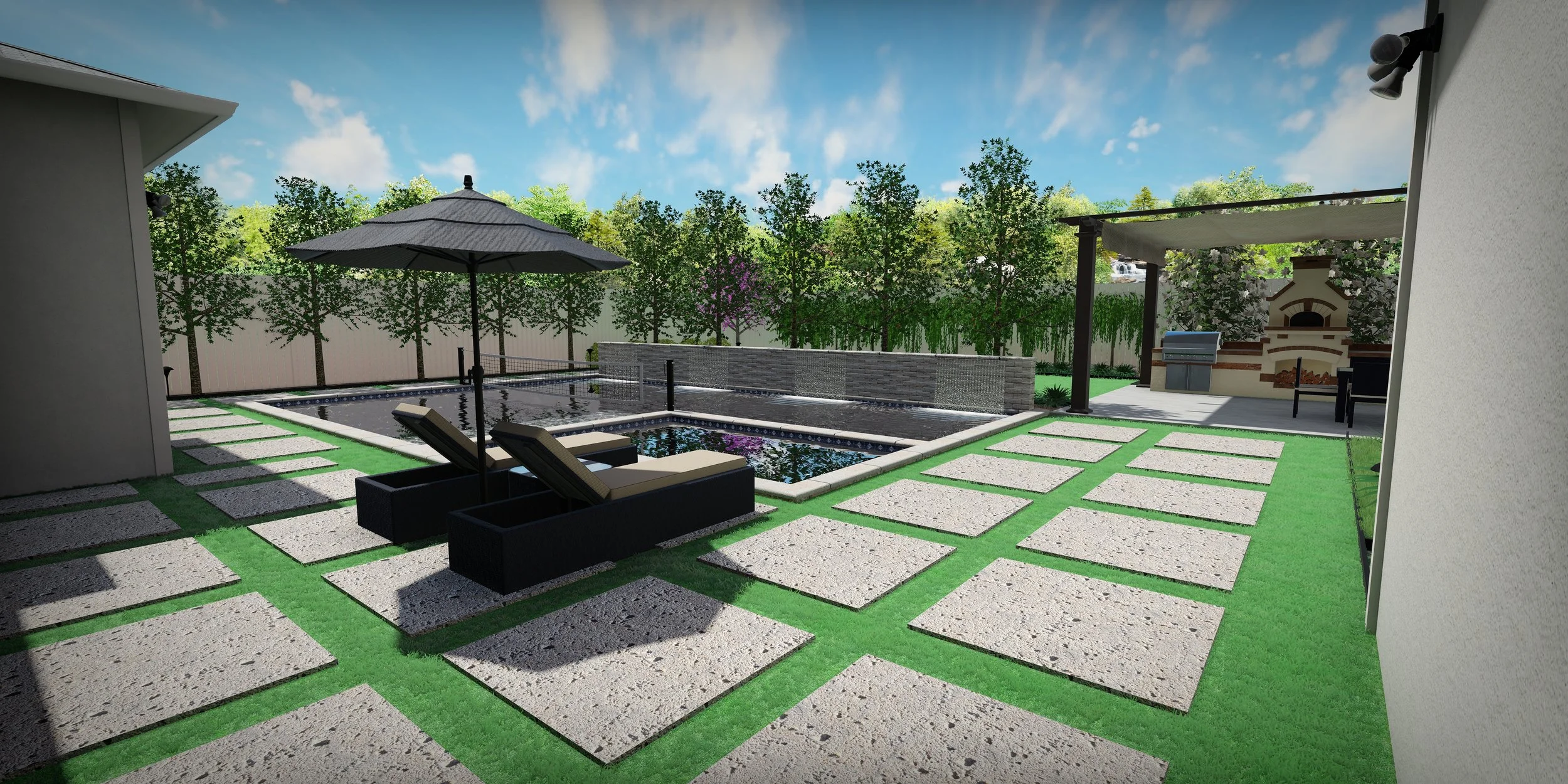 Modern Pool/Backyard ConceptPartnering with a realtor we gave a vision to this new construction’s blank backyard. With a very contemporary open-concept interior design, we wanted to complement the design with an open multi-purpose landscape.