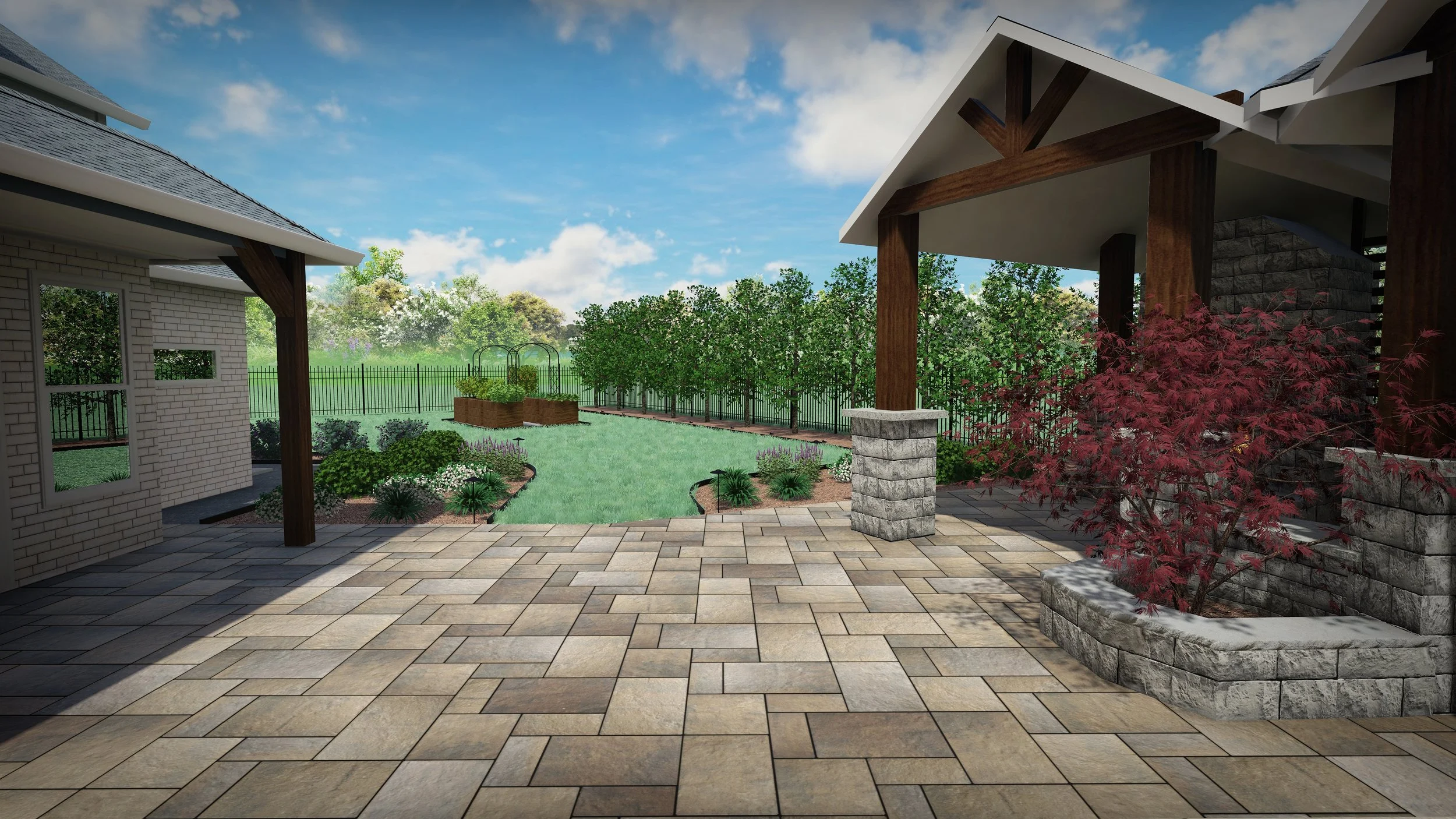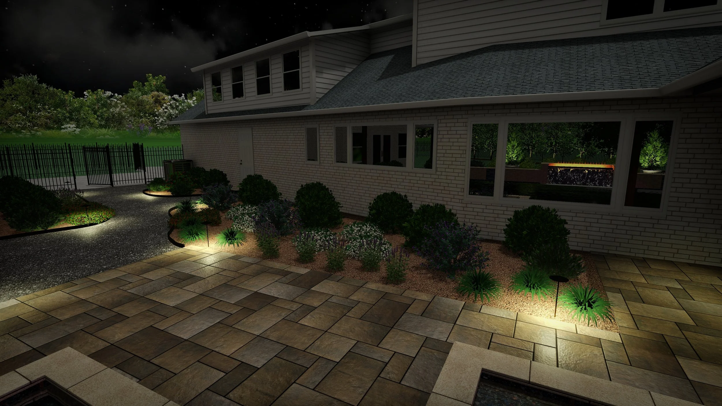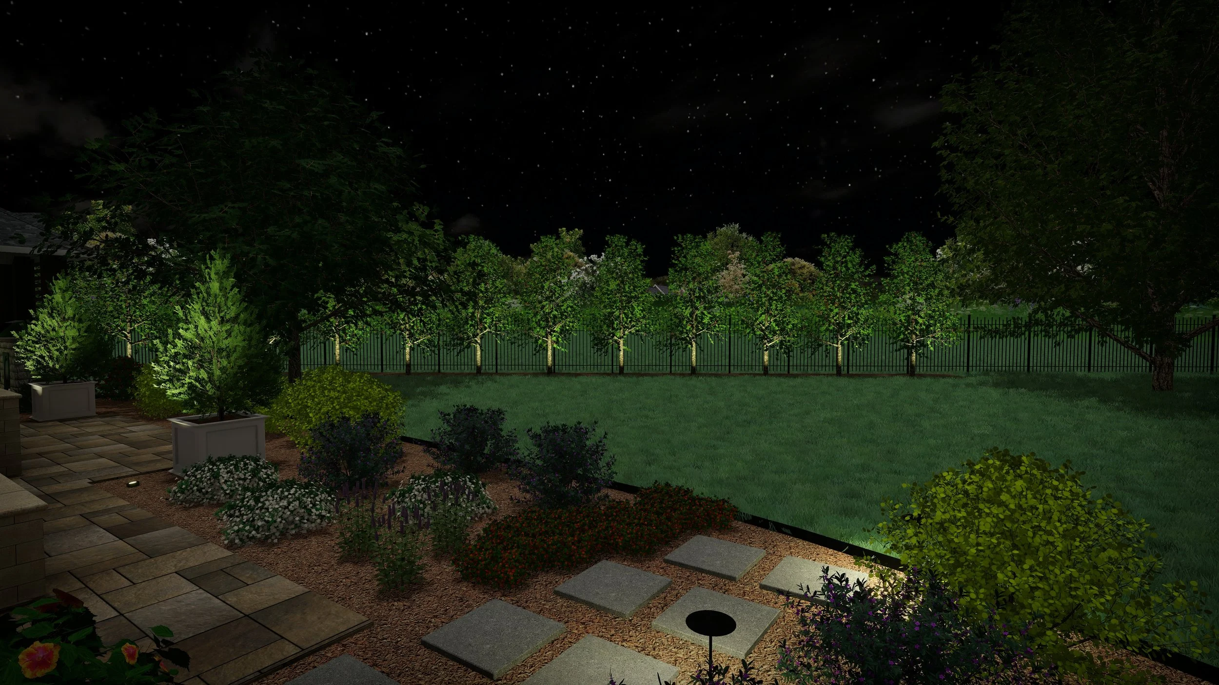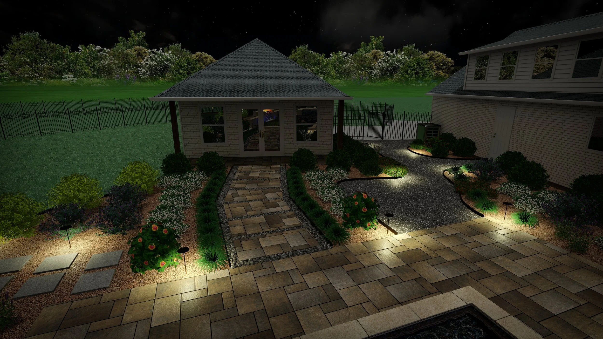 After completing a pool, outdoor kitchen, and pool house project, they needed a landscape design that gave their empty landscape life. Blending natural landscaping with contemporary hardscape, this design is meant to grow naturally with only seasonal trimming and cutbacks.
